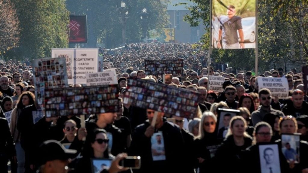 北马其顿3月发生一起63人死亡的夜店大火,数千人周六聚集首都斯科普里声援罹难者家属,呼吁即将进行的法庭审判能够伸张正义。