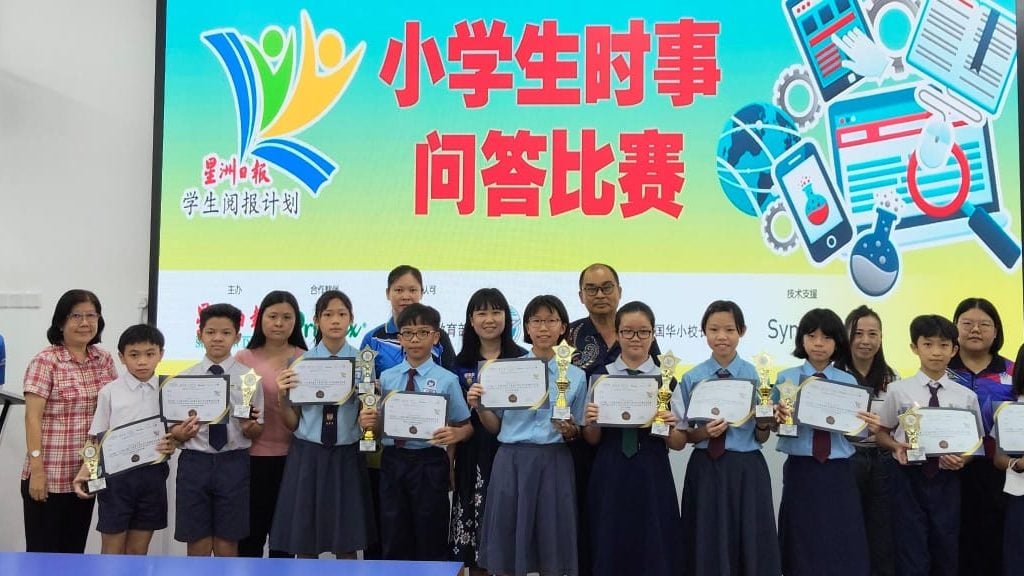 (古来27日讯)2025年第29届星洲日报小学生时事问答比赛古来县决赛今早在大古来华小举行,45名学生参与线上问答赛,由太子城培正华小丘芯梦勇夺冠军。 得奖者还包括亚军:黄心钰(新港华小);季军:郑子琳(大古来华小);第四名:锺盛安。 (大古来华小);第五名:王惠贤(文化华小);优秀奖:黄凯诚(士年纳华小)、林家乐(辅莱华小)、黄诗棋(新港华小)、刘冠绮(古来一小)、戴于恒(古来一小)。 值得一提的是,今早的比赛恰逢宽柔中学举行入学试,宽中古来分校老师邓绣薇特地来到大古来华小,为6名报考入学试却因参赛而无法到考场应考的学生监考。 今年古来县赛共有45名来自15所华小的学生踊跃参与,每一所学校早前已在校内举行预赛,再选拔三甲得主代表学校出征。 参赛学校包括:江加埔来文化华小、辅莱华小、乌鲁槽敬业华小、武吉峇都柏图华小、亚逸文 满万邦华小、加拉巴沙威四维华小、士年纳华小、古来新港华小、古来一校、古来二校、沙 令华小、士乃华小、大古来华小、太子城培正华小及泗隆华小。 出席颁奖礼的嘉宾,包括大古来华小校长戴志敏、家协主席李嘉辉等。 这项赛事由星洲日报“学生阅读计划”主办,获得马来西亚教育部认可,宝马集团(Promac Group)为合作伙伴,协办单位包括全国校长职工会、全国华小校长协会及全国各地华教团体,并由Synorex提供技术支援,星洲网提供网页支援。 冠军得主丘芯梦受访时表示,她很开心能脱颖而出获得冠军,并要感谢班主任及妈妈的鼓励。 亚军得主黄心钰也感谢老师的指导,并指经常阅读报章很重要。 季军得主郑子琳表示,没有意料自己会拿到季军,因此对获奖感到很开心。