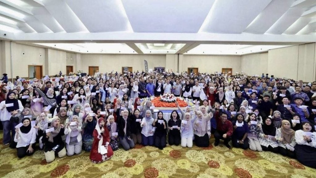 逾500名在沙巴州就读大学的柔佛州大学生,在日前举办的感恩之夜中,从柔佛州务大臣拿督翁哈菲兹手中领取一次性200令吉援助金,脸上都洋溢著喜悦的笑容。