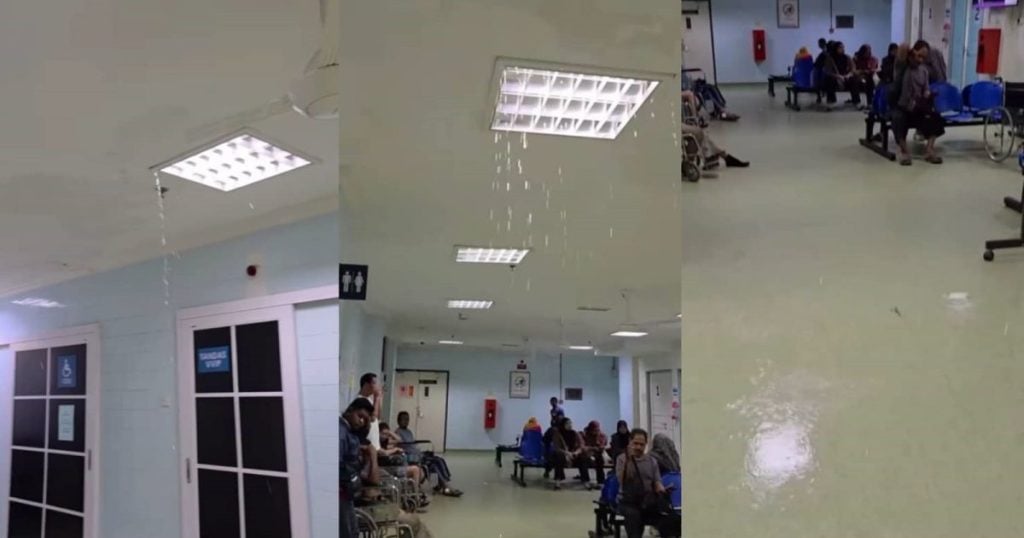 关丹昨天傍晚发生雷暴雨,除了在市区数街道及住宅区引发闪电水灾以外,关丹东姑安潘雅富珊医院急诊部候诊区也发生天花板严重漏水的情况。