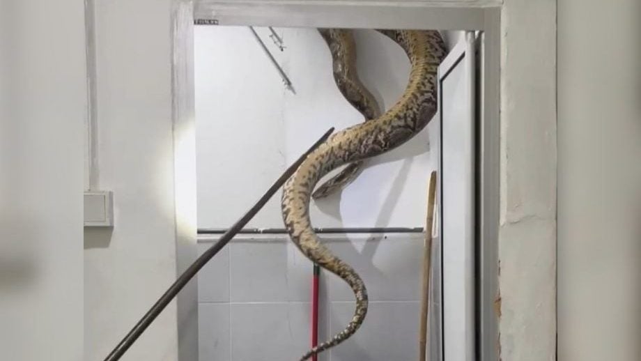 视频 | 5公尺巨蟒藏天花板破洞 女教师惊呼:大如森蚺!