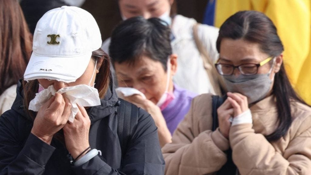 香港大埔广福社区会堂周四下午3时起开放予失联者家属尝试经相片进行认尸程序,不少家属离开会堂后痛哭,需要搀扶。