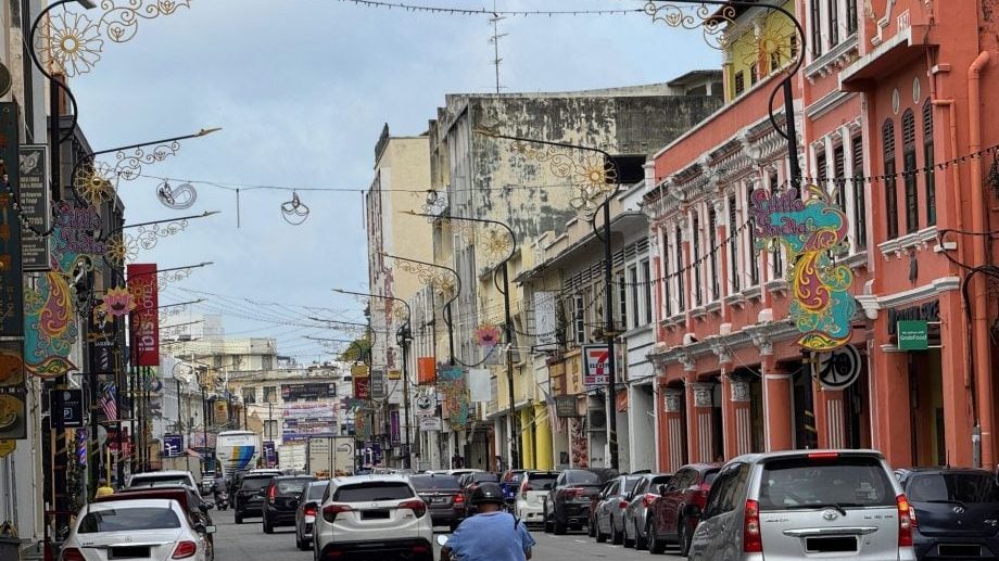 位于马六甲市中心的新路,是一条充满文化层次的街道,展现日常的烟火气息与时间沉淀下的城市脉络;街道前半段是典型的华裔商业地带,后半段则过渡至印裔社区活跃的“小印度”,两种文化在不到一公里的街道上交汇并存,展现出马六甲特有的多元共生风貌。