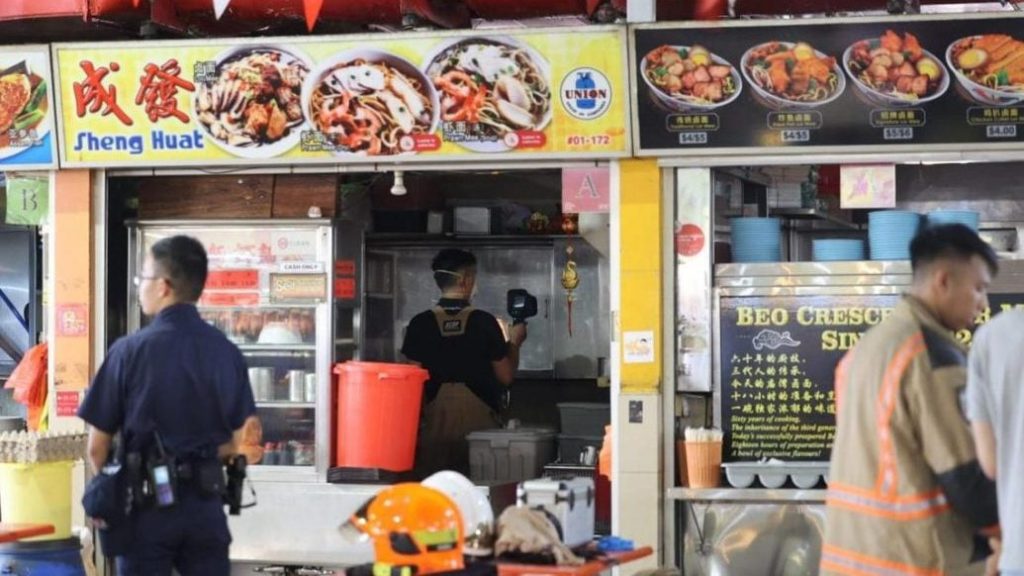 小贩中心面摊突传2巨响 民防封锁现场调查