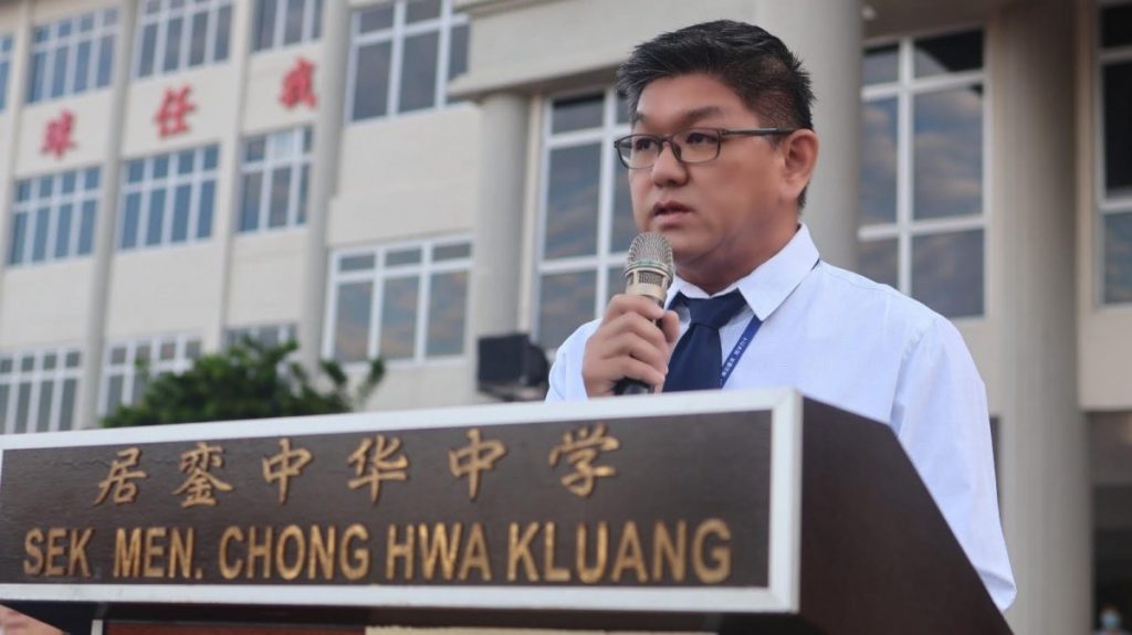 居銮中华中学日前在体育场举行升旗典礼,董事长王培荣代表全体董教学,宣布校长赖俊雄正式接任,肩负引领銮中持续发展与教育革新的重任。