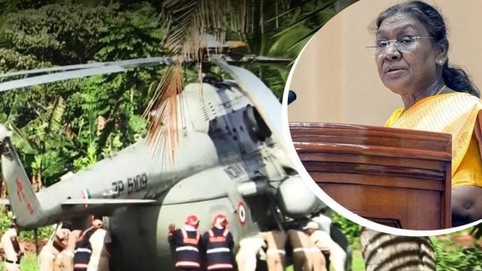 印度总统慕尔穆周三(22日)访问南部喀拉拉邦期间发生意外,她乘坐的直升机在降落一个临时兴建的停机坪时,地面突然塌陷,机轮陷入坑洞,现场警察和消防人员即刻上前,徒手推动机身助她脱困,场面一度紧张。