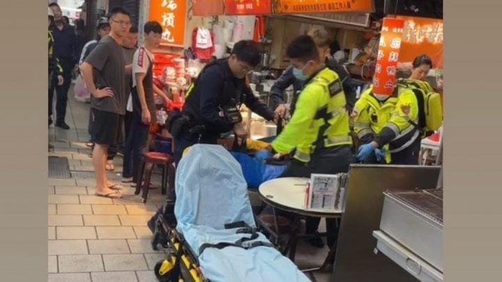 台湾新竹市都城隍庙前广场周六晚发生砍杀事件,4名男子持刀闯入小吃店将一名17岁工读生乱刀砍倒,脏器也露了出来,目前仍在医院抢救中。