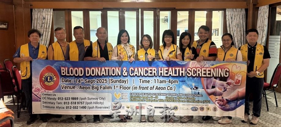 怡保5个狮子会将于9月14日(星期日)联合怡保中央医院,在华林市大永旺(Aeon Big)购物广场举办捐血及体检运动,呼吁民众踊跃出席。