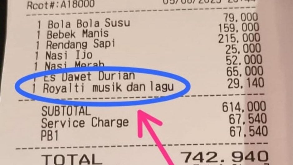 一名男子在印尼一间餐厅用餐后,拿到的账单中竟包含2万9140印尼盾(约7令吉60仙) 的“音乐播放费”,令他大感惊讶。