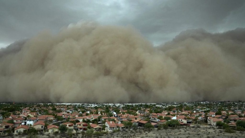 一堵高耸的沙尘墙周一席卷了凤凰城大都会区,风暴导致数千人断电,机场航班也被迫暂时停飞。