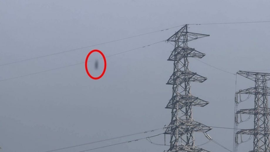 台湾桃园龟山龙寿工业区后方一处高压电塔,周三被民众发现有人绑绳垂吊在60公尺高度的高压电线上,疑似触电高挂电线上。