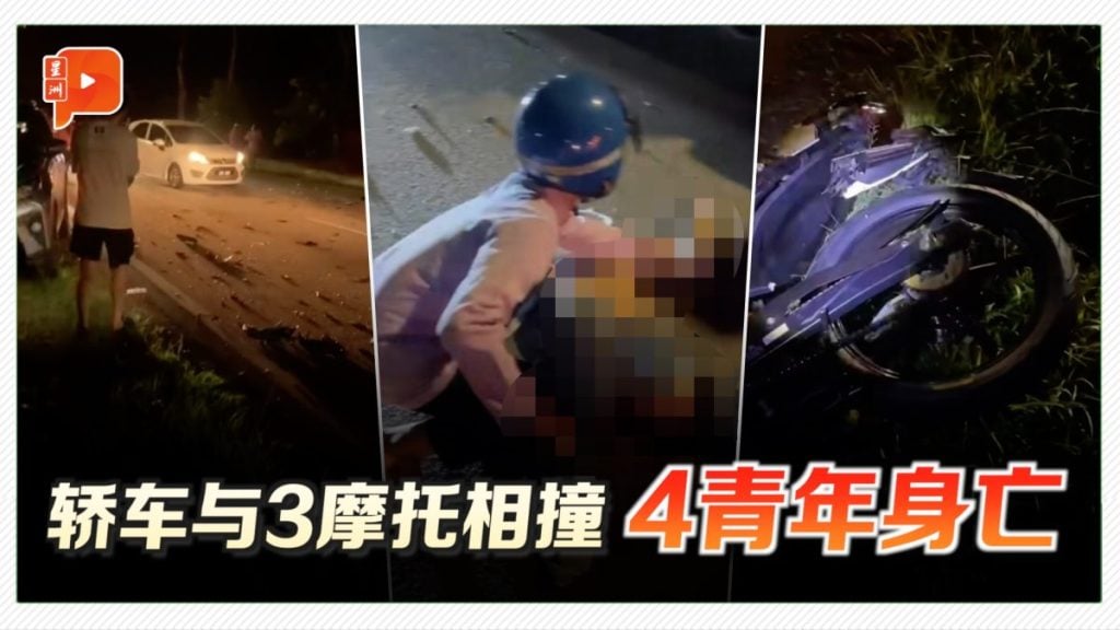 柔佛麻坡昔加末路段第32.5公里处,靠近东甲新镇一带昨晚(10月24日)10时许发生严重车祸。一辆轿车与三辆摩托车相撞,造成四人死亡。