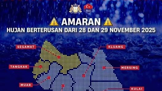 (新山27日讯)柔佛州务大臣拿督翁哈菲兹呼吁民众保持警惕,特别是马来西亚气象局将昔加末县和东甲县列入持续降雨(WASPADA)的级别,必须随时关注天气变化和做好防灾措施。 “根据马来西亚气象局发布持续降雨黄色级别预警,预计昔加末县和东甲县将在11月28日至29日期间迎来连续性降雨。” 翁哈菲兹今日在脸书上载柔佛州10个县的地图,当中昔加末县和东甲县都标上黄色,提醒民众留意可能出现的连续降雨天气。 翁哈菲兹在脸书贴文指出,大马气象局发布的讯息,盘旋于马六甲海峡的低气压系统预计将在此期间向东移动,途经雪兰莪、吉隆坡和彭亨州。 “该低气压系统的移动也可能导致柔佛州北部地区出现持续降雨。” 他说,柔佛州政府正与所有安全和灾害管理机构一起进行准备工作,包括监测河流水位、后勤保障、协调高风险地区的行动等。 “此举是要确保一旦天气状况恶化,能够立即调动一切的援助。” 大臣吁请民众包括居住在地势低洼地区、河流附近或水灾黑区居民,若发生水灾,务必遵守当局的指示及进行疏散。