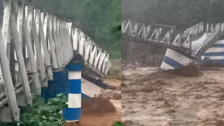 暴雨洪流冲垮铁桥 男子被挖出已成泥人