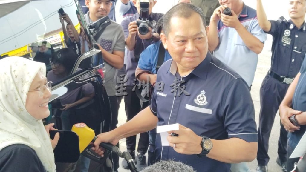 随着“仁政昌明RON95”(BUDI 95)汽油补贴计划今日率先开放让军警使用,柔佛州总警长拉哈曼亲自到油站体验添油流程,并赞扬此计划能减轻警员负担,让柔州9534名活跃警员从中受益。