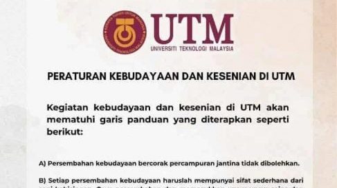 社交媒体近日流传疑似马来西亚工艺大学(UTM)的《文化与艺术政策》演出指南,引发《大专演唱会指南》死灰复燃的忧虑;为此,马大新青年促请高教部白纸黑字一劳永逸地撤回演唱会指南,尊重和包容每个学生的表达自由,不让马来西亚校园走向保守和极端。