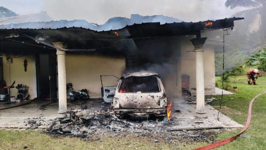 (麻坡17日讯)麻坡登雅甘榜哈芝安努巷一间住宅今早发生火宅,房屋约有70%被烧毁,而汽车和摩托则被烧毁达90%,所幸无人伤亡。 柔州消拯局于今早9时44分接获投报,并从麻坡消拯局派出15名消拯员、3辆FRT和LFRT型消拯车以及1辆多用途车,并在9时56分抵达现场,行动指挥官为巴哈鲁丁。 据该局发布的文告表示,消拯局抵达现场时,发现一间约50呎乘30呎的单层民宅,以及一辆汽车和一辆摩托车正在燃烧。消拯人员立即展开灭火行动,使用两条水管,从消拯车水罐取水。 消拯员于上午11时6分将火势完全扑灭并结束行动,起火原因及损失仍在调查中。