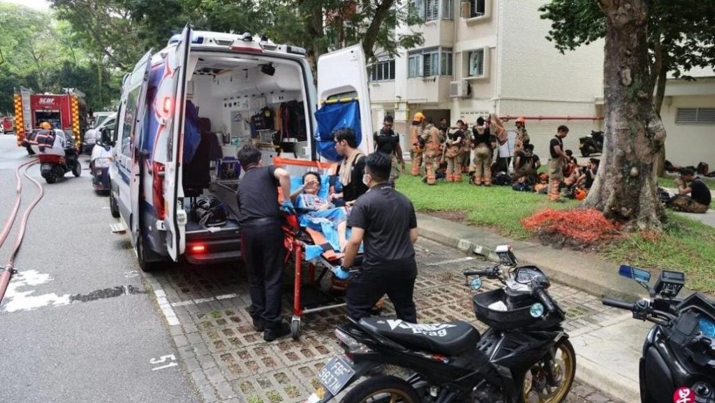 狮城1组屋凌晨火患 3人送院约50居民疏散