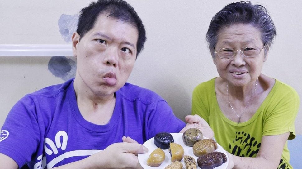 8年前因脑溢血中风而导致行动不便,尽管如此,周靖扬从未因此放弃生活。在休养期间,他持续坚持自己的兴趣——烘焙做饼。在父母的支持下,尤其母亲陪同协助下,他制作猪仔饼、月饼及年饼进行销售,展现他不向命运低头的坚韧与热情。
