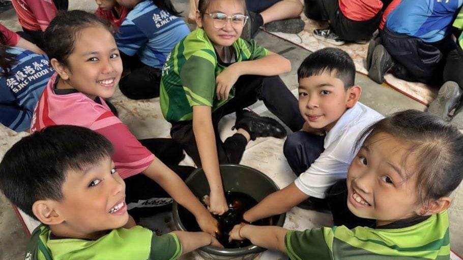 由于一直以来纸巾是学校垃圾的主要成分,安顺培养小学教导学生制作及使用草木染手帕,希望能将纸巾使用率降到最低,以实际行动向小学生提倡环保意识。