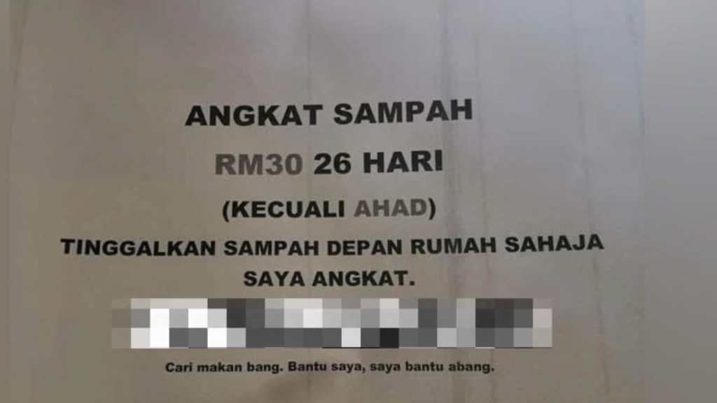 网传一则提供垃圾清运服务的广告海报,一个月26天收费仅30令吉,引发网民热议!