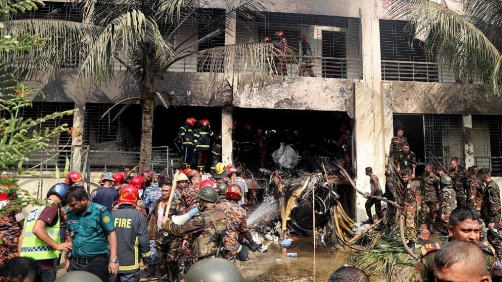 孟加拉空军教练机坠毁 首都校园增至19人死