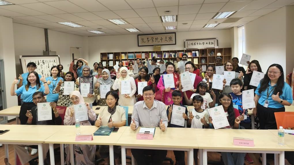 (金宝6日讯)克服学习陌生语言的障碍,77名金宝拉曼大学(优大)孔子学院2025年第一学期课程学员今天顺利结业,获颁证书。