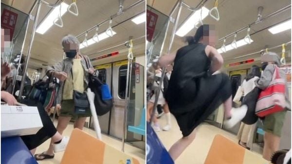 博爱座的道德绑架又一桩。一名老妇在捷运里要求年轻乘客让座,遭拒后情绪失控,挥包狂打乘客,却没料到招惹到狠人,被乘客一脚踹飞!