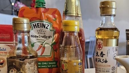 多年来外食,尤其旅行,都习惯带酱料防身。胃口不好,心情欠佳,宿醉无神;瓶瓶罐罐在旁守候,一剂一倒,怎么都可以吃两口,不然哪有精力再战江湖?防身四宝,左护法辣椒酱,右护法酱油……
