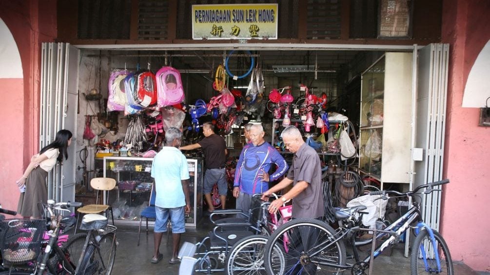 1930年代,华都牙也正值锡矿业鼎盛,矿工与商贩往来频繁,居民的出行与运输需求随之大增。彼时汽车尚未普及,脚车因价格相对可负担、保养简便,又适合短途与中程交通,迅速成为居民与矿区工人的主要代步工具。 在这样的社会与经济推动下,脚车行业迎来黄金时期,全镇拥有多达6家脚车店,分布在主要街道与商业区。这些店铺不仅贩售全新与二手脚车,还提供维修、零件更换及轮胎补漏等服务,有些甚至经营脚车出租,方便无力购车的居民使用。 然而,随着时代变迁,摩托车与汽车逐渐取代脚车的主流地位。昔日门庭若市的脚车店,如今缩减至4家,仅有3家仍坚持提供维修服务。斑驳的招牌、泛旧的工具,依旧静静守候在街角,仿佛在低声感叹着那个车轮滚滚,铃声清脆的黄金年代早已远去,却仍在老镇的记忆深处缓缓回荡。 承载着小镇岁月记忆 新力丰脚车商店屹立于华都牙也大街,至今仍保留着马来西亚早期英殖民时期典型的双层骑楼式店屋风格,瞩目的红色外墙配以古典柱式装饰与通风百叶窗,既散发着浓郁的南洋老街风情,也承载着小镇的岁月记忆。 走入店内,映入眼帘的是斑驳的木质柜台、成圈悬挂的外胎与内胎、整齐排列的锤子与锉刀,以及倚靠在角落的小车轮圈和各型号新旧脚车。空气中弥漫着橡胶与机油交织的味道,夹带着岁月沉淀的木香与金属气息,令人不禁联想到昔日脚车行业的辉煌,以及小镇的繁华景象。 陈义兴:从小跟父学艺经商 第二代东主陈义兴接受星洲日报《大霹雳》社区报访问时指出,该店已有约80年历史,最初名为“新华兴”,由其父亲陈道模于英殖民时期创立。约10年前,店铺传至他儿子手中,才更名为 “新力丰” 。 他说,自小与父母在店铺楼上生活,伴着楼下叮叮当当的敲打声长大。自懂事起,就跟随爸爸学习维修技艺和经商之道。 “爸爸修理脚车时,我就在一旁递送工具。他手把手教我转动扳手、用校圈机校正车轮及调整链条等手艺,我也在多次练习中逐渐熟练,直到能够独当一面,继而接手这家店铺。” 他表示,这不仅是一门谋生的本领,更是父亲留给他最珍贵的手艺;而如今,这份手艺又传承给儿子陈力丰,继续守护着父辈留下的生意与初心。 锡矿业没落 脚车业也渐衰落 他披露,1930年代的华都牙也因督亚冷铁船运载锡矿而商贾云集,繁忙的港口带动交通与贸易,也让脚车成为普及的代步工具,促成脚车行业兴盛。 他透露,当年小镇共有6家脚车店,客户多来自华都牙也、布先,以及督亚冷的各族群。后来随着锡矿业没落,铁船停航,港口繁华不再,商贾往来锐减,脚车行业也逐渐走向衰落,慢慢缩减至如今仅存的4家。 他说,从前的脚车以钢铁为主,车架坚固耐用,但重量较重;如今则多采用轻量化合金或碳纤维材料,更适合长途与休闲骑行。 陈力丰:未算“夕阳行业” 第三代东主陈力丰指出,如今市场上提供维修服务的同行越来越少,但他认为,脚车商不能只懂销售,更要掌握维修技能,才能准确判断各类脚车的问题,确保其安全性。 “维修脚车是一门结合技巧与经验的手艺,需要细心观察、耐心调试,更要对每一处零件了如指掌,才能确保每辆脚车能够安全顺畅地上路。” 他说,他接手时,脚车行业已不如往日兴盛,但已是当地的老字号,仍有许多熟客支持,不时带着脚车来保养与维修,店铺才能一路经营至今。 他指出,店里业务不仅限于售卖和维修各类新旧脚车,还包括轮椅维修,以及摩托车轮圈的校正服务。 他披露,行动管制令期间,由于当地民众外出依赖脚车代步,加上无法跨州旅游,生意反而出乎意料地好。然而,自开放以来,生意开始恢复冷淡,顾客以马来族群为主,多数购买脚车在甘榜使用。 “从前除了锡矿工人和商家,当地的学生也是骑脚车的主要群体,几乎家家都有一辆,方便上学和日常出行。如今,随着汽车数量日益增加,家长担心孩子的安全,改为亲自接送,骑脚车上学的学生已属少数。” 他认为,脚车行业尚未算是“夕阳行业”,关键是不应只局限于销售,而要坚持提供维修服务,因为始终会有人需要脚车的保养与修理。