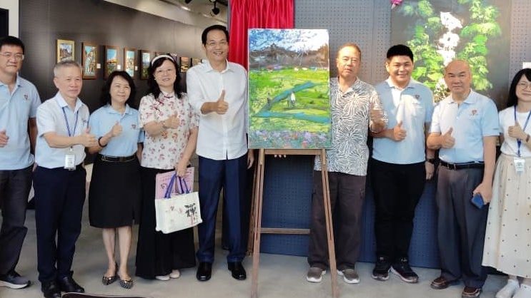 (麻坡23日讯)一把“刀”、各种亚克力颜料加上一块画板,在我国著名刀画艺术家古天发手中,化为一幅幅生动的艺术佳作,而如今,这些作品正在麻坡与公众见面。 麻坡中化中学即日起至9月29日,在善心堂展览厅举办古天发个人刀画作品展《自然的回声》,展出82幅作品,让麻坡民众近距离感受刀画的魅力。 这项展览于今早由中化中学董事长徐景贤主持开幕仪式,古天发也现场示范刀画技艺,让在场者大开眼界。 他一边与在场者轻松互动及分享创作趣事,一边动手作画,约半小时后便完成一幅田园美景,赢得在场者的赞叹及热烈掌声;他随即宣布将作品赠予中化中学。 古天发在开幕仪式上也分享学画历程,并指自己在工作20多年后返回家乡槟城,因结识一些画家而重燃年少时的绘画梦想,于是在50岁时开始学画,约5年后就举办个人画展。 他坦言,许多亲友得知他会画画是都非常惊讶,因为就连他自己也几乎遗忘了对作画热爱。他此后接受多家媒体的访问,还因画展的契机让他在去年60岁时,担任本地电影《好好再一起》的男主角。 他勉励学生若对艺术有兴趣,应勇敢投入并在艺术领域发展。 另外,麻坡中化中学校长蒋璁江致词时指出,刀画在麻坡相当少见,校方早在6年前就有意邀请古天发到校举办个展,让民众与学生认识此艺术形式,却因行管令而耽搁至今。 他希望通过画展来鼓励对艺术有兴趣的学生积极追梦,或朝自己有兴趣的领域发展,走出自己的风格。 他补充,本次画展的一半收益将拨入该校“心艺美术基金”,以资助更多学生投身艺术领域;该基金目前累计数额已超过50万令吉。 《自然的回声》个人刀画作品展的展出时间是上午9时至下午3时,9月26日则不对外开放。 与会者包括:中化中学副董事长符肇珍、副总务陈金德、礼堂/演艺厅及展览厅组主任谢凯岳、董事陈大成及董事长夫人黄慧艳等。