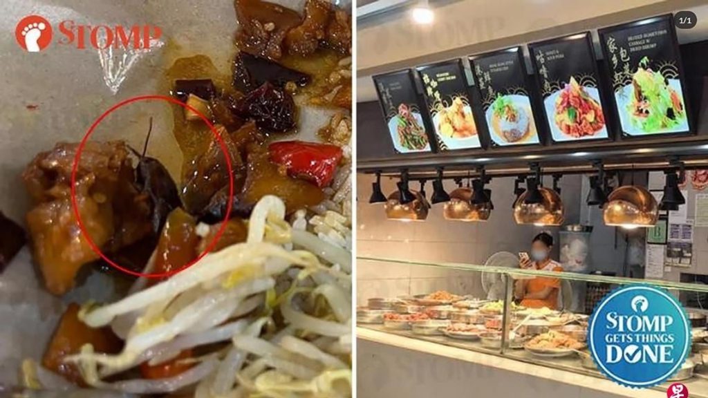 孩子吃杂菜饭发现宫保鸡丁里有蟑螂,母亲到摊位反馈时,称摊位员工无视,主管道歉退款。