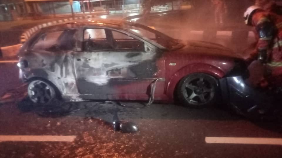 一辆豪华轿车在金马仑往新邦波赖路处起火,车身90%烧毁,消拯队迅速到场并成功控制火势,未酿成伤亡悲剧。
