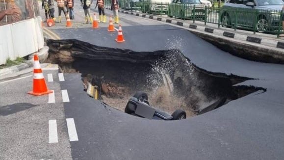 丹戎加东路和蒙巴登路交界处发生地陷事故,一辆由女司机驾驶的汽车掉落地陷坑中,朝往东海岸公园大道的交通一度受影响。