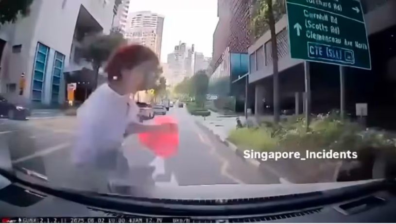 (新加坡5日讯)一名26岁女子在乌节路一带被拍到冲出马路,结果被车撞飞,送院接受治疗。 《8视界新闻网》报道,这起事件于本月2日早上10时左右发生。 根据脸书专页发布的视频,一辆汽车在乌节路一带行驶时,一名女子突然从左边冒出,结果被这辆车撞飞,车子的挡风玻璃因撞击力而破裂。 新加坡民防部队受询时说,他们事发当天早上10时左右接获通报,指必德福路发生交通事故。 民防部队将一人送往陈笃生医院。 警方透露,这名26岁女子在意识清醒的状态下被送院,43岁的男司机正在协助调查。