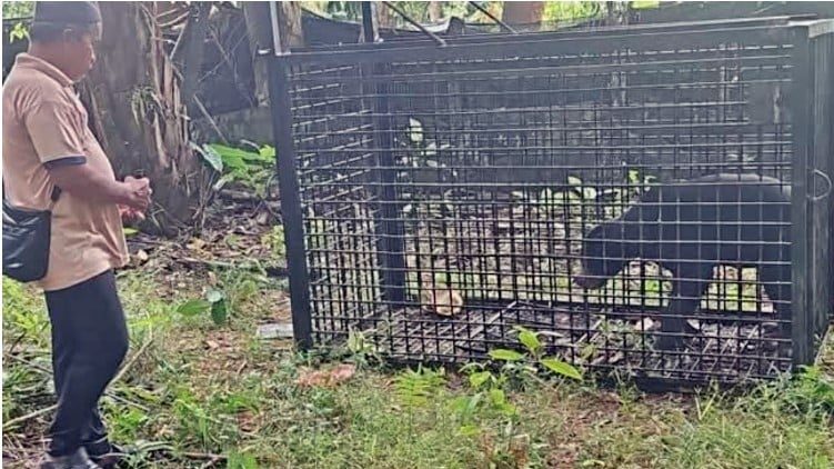 在甘榜游荡马来熊被捕获 被安全释放回栖息地