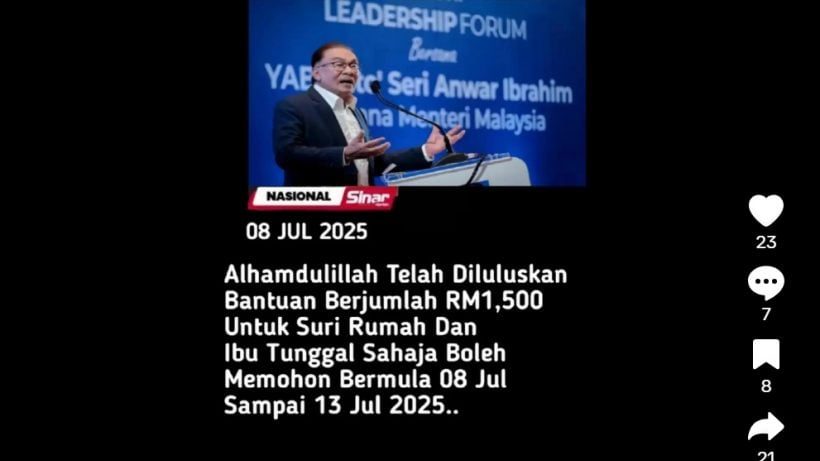 求真 | 网传主妇单亲妈妈可获1500援金 MyCheck:假的!