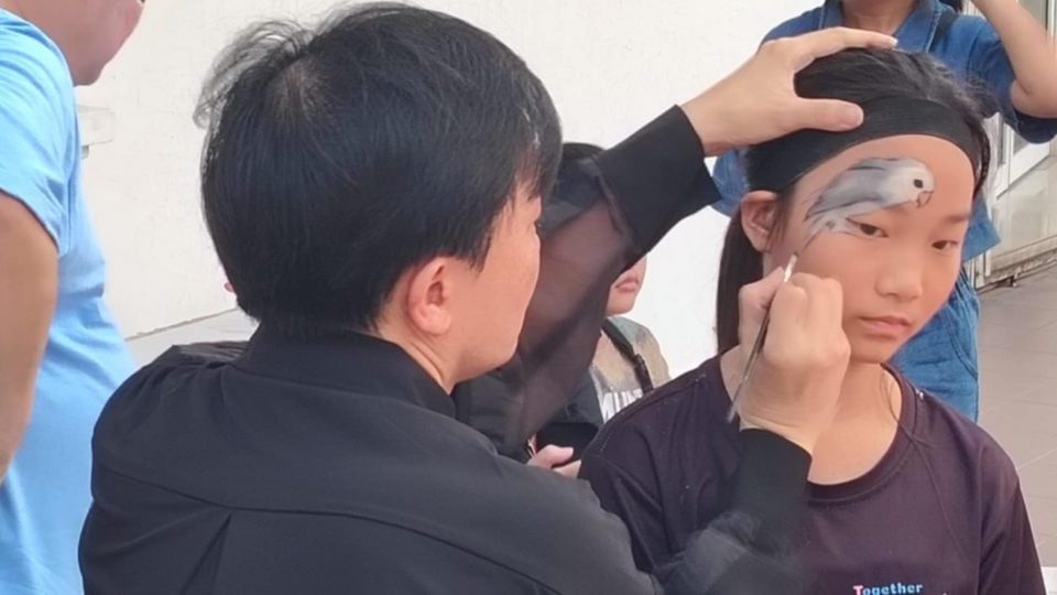 (新山2日讯)面部彩绘体验工坊今早在新山陈旭年文化街闪亮登场!透过绘制戏曲脸谱、卡通图案等多元风格,让艺术之花在民众脸上绽放。