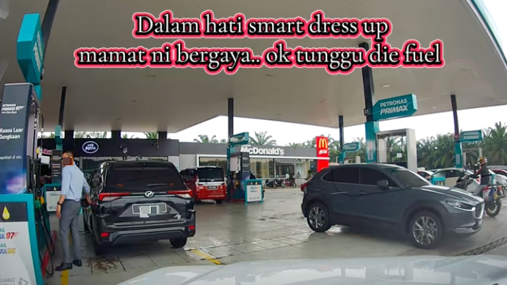 新加坡注册的车子竟在大马油站霸位(chop位子),车主添完油后进入便利店买食物,出来后站在门口处慢慢享用,无视多辆车子在排队,瞬间引发公愤!