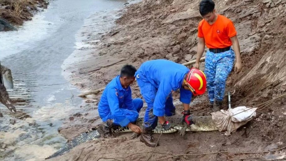 一条重达350公斤的鳄鱼,11月5日闯入砂拉越木中省柏拉汀的居民家屋底,吓坏居民。民防部队接报后与居民合作,花15分钟成功制服巨鳄。